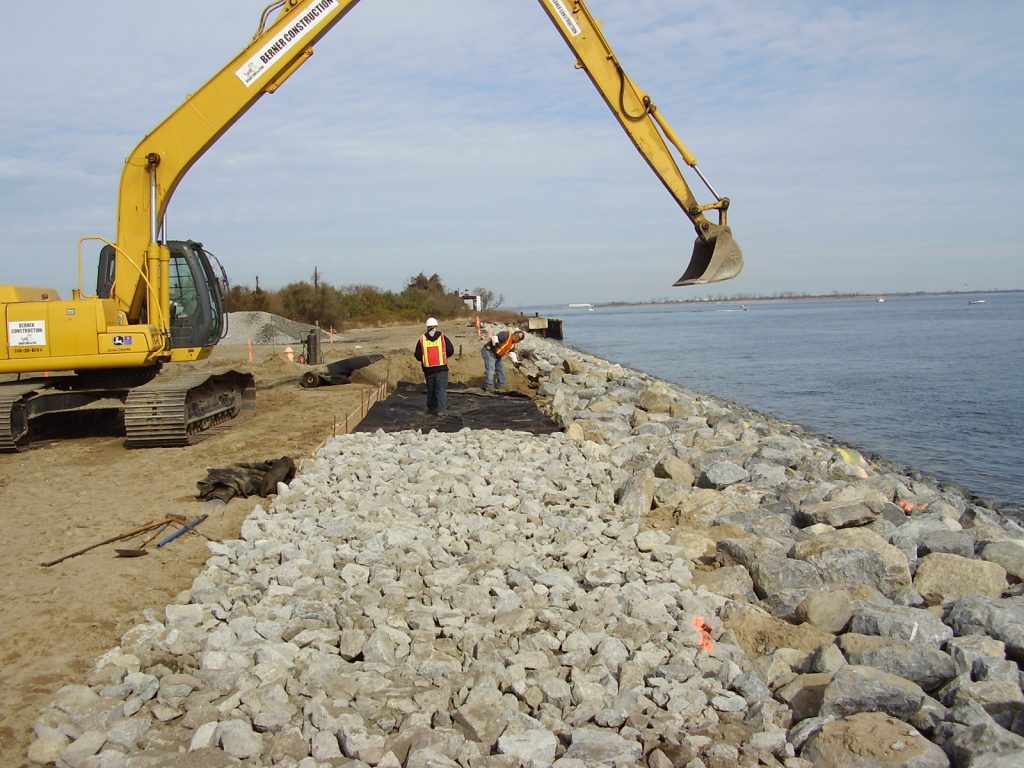 TN & Associates contracted with EarthRes Group, Inc. to prepare the geotechnical investigation and sheet pile structural evaluation, gather the required oceanographic/meteorological data, and to perform the design calculations for rock revetment construction. EarthRes prepared construction drawings depicting existing conditions, proposed grading, cross-sections and stormwater management controls; prepared design calculations for stormwater management controls; completed revetment slope stability and construction geotextile evaluations; prepared civil discipline technical specifications; and provided assistance with the New York State Department of Conservation Joint Application for Permit.