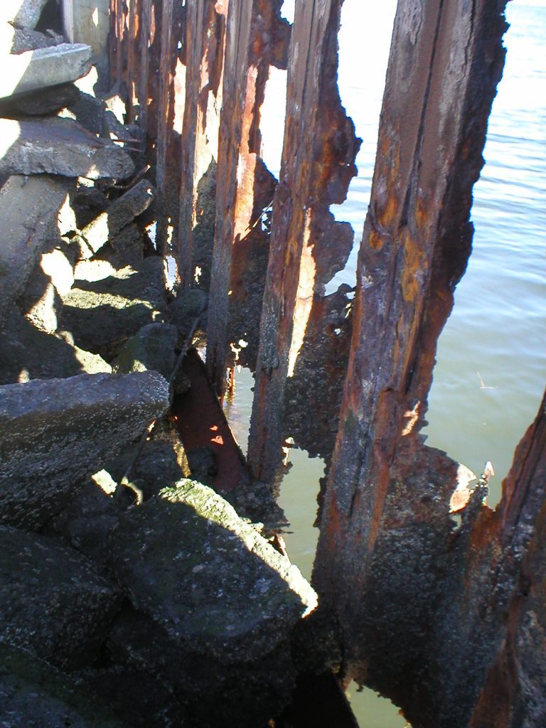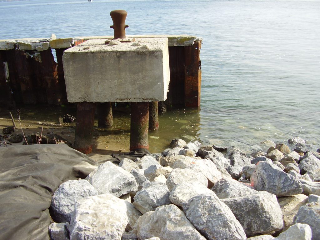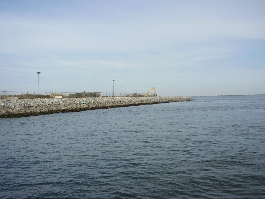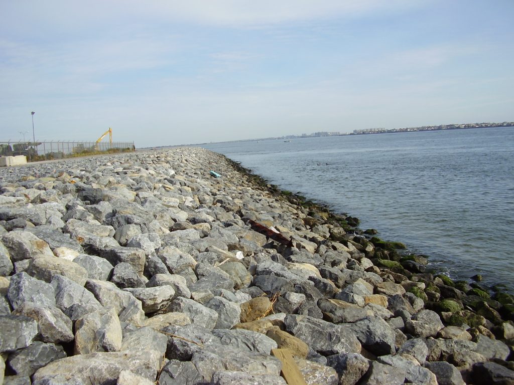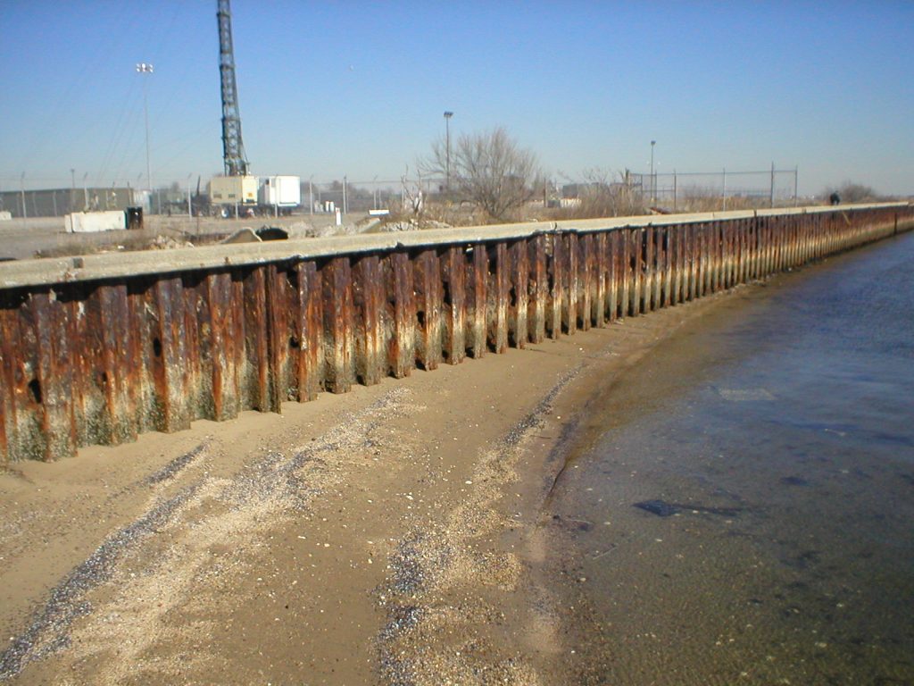 EarthRes Group Inc. provided coastal revetment design services for Marine Corps Reserve Center (MCRC) Floyd Bennett Field. The facility shoreline along the northern edge of Jamaica Bay was comprised of steel sheet piling which was severely corroded. Significant erosion and destabilization of the fill material located behind the sheet pile wall occurred due to wave action and scouring through wall breaches and corrosion holes.